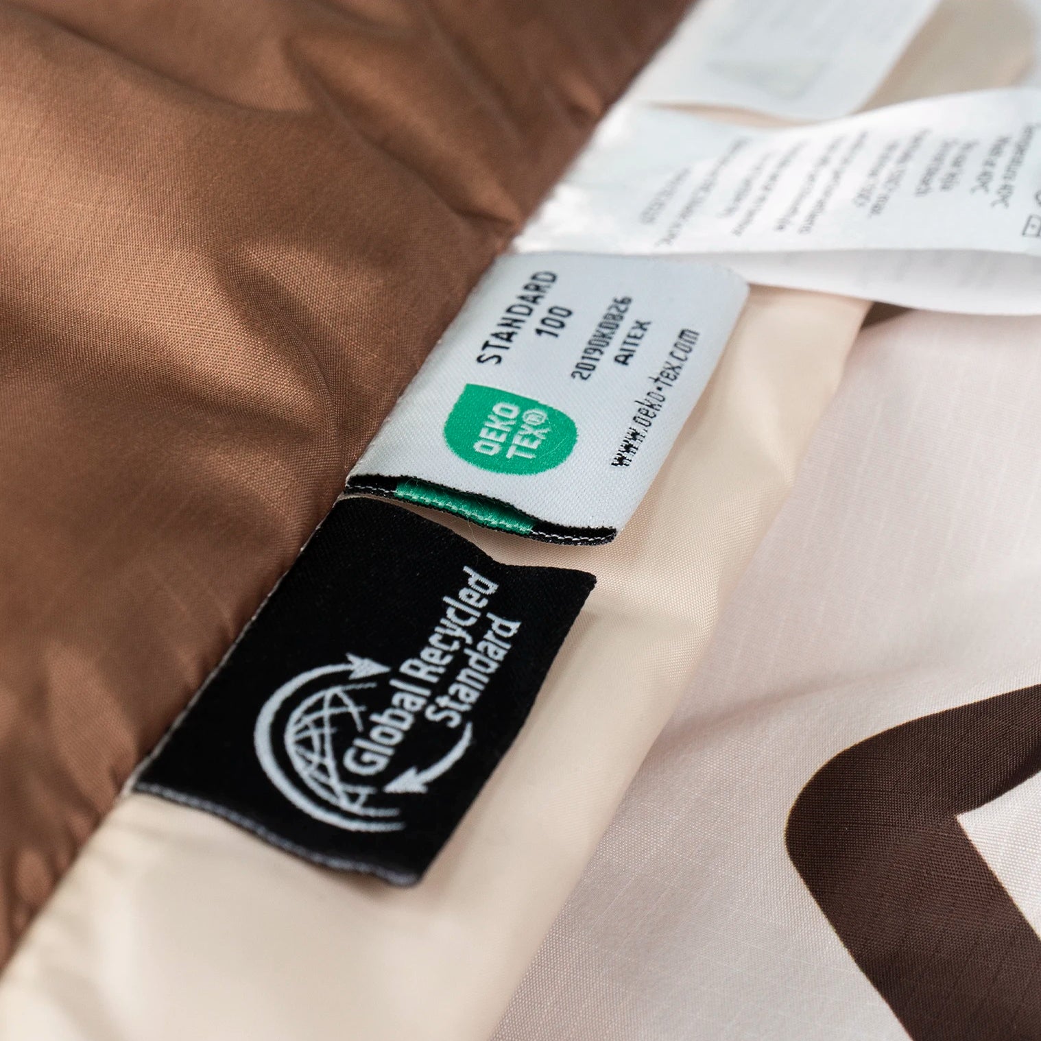 Para la capa intermedia hemos usado relleno técnico Micro-Thermal Fill Insulation, certificado por Oeko-Tex. Proporciona un excelente aislamiento térmico y transpirabilidad. Esta novedosa fibra hueca actúa como la pluma tradicional, pero libre de crueldad animal al estar fabricada en poliéster.
