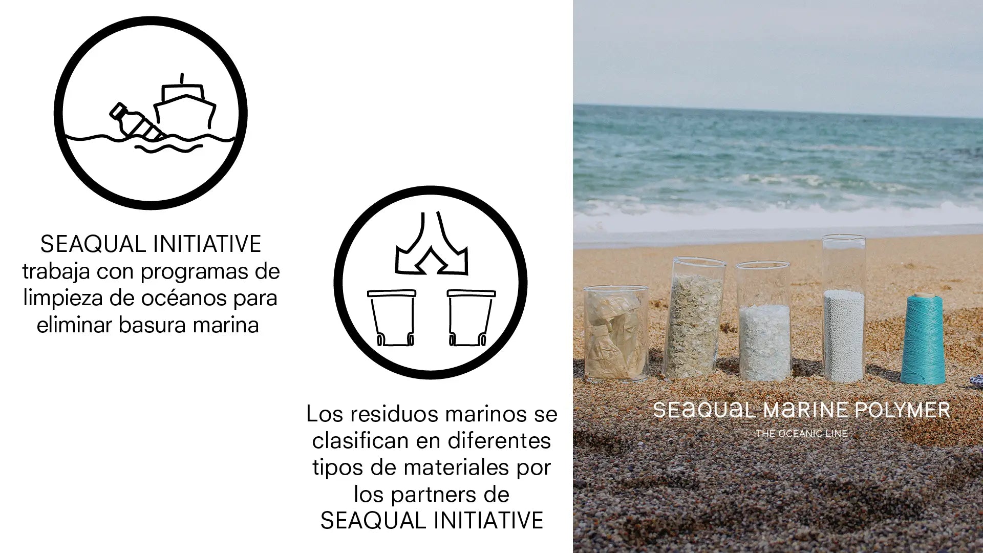 Our sustainable lycras They are made of fabric woven with high-quality polyester thread, produced from recycled marine plastic. In this way, we help maintain clean oceans together with the SEAQUAL INITIATIVE.