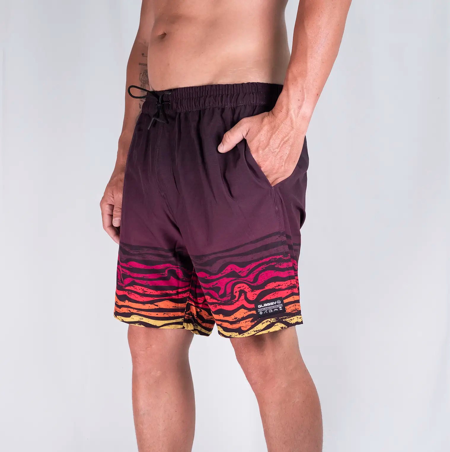 The swim shorts Sunset Swell offer an 80s-inspired design based on the colors of a perfect sunset after a good surf session. Made from coconut fiber and recycled polyester, they are ideal for surfing, outdoor adventures, or van getaways.