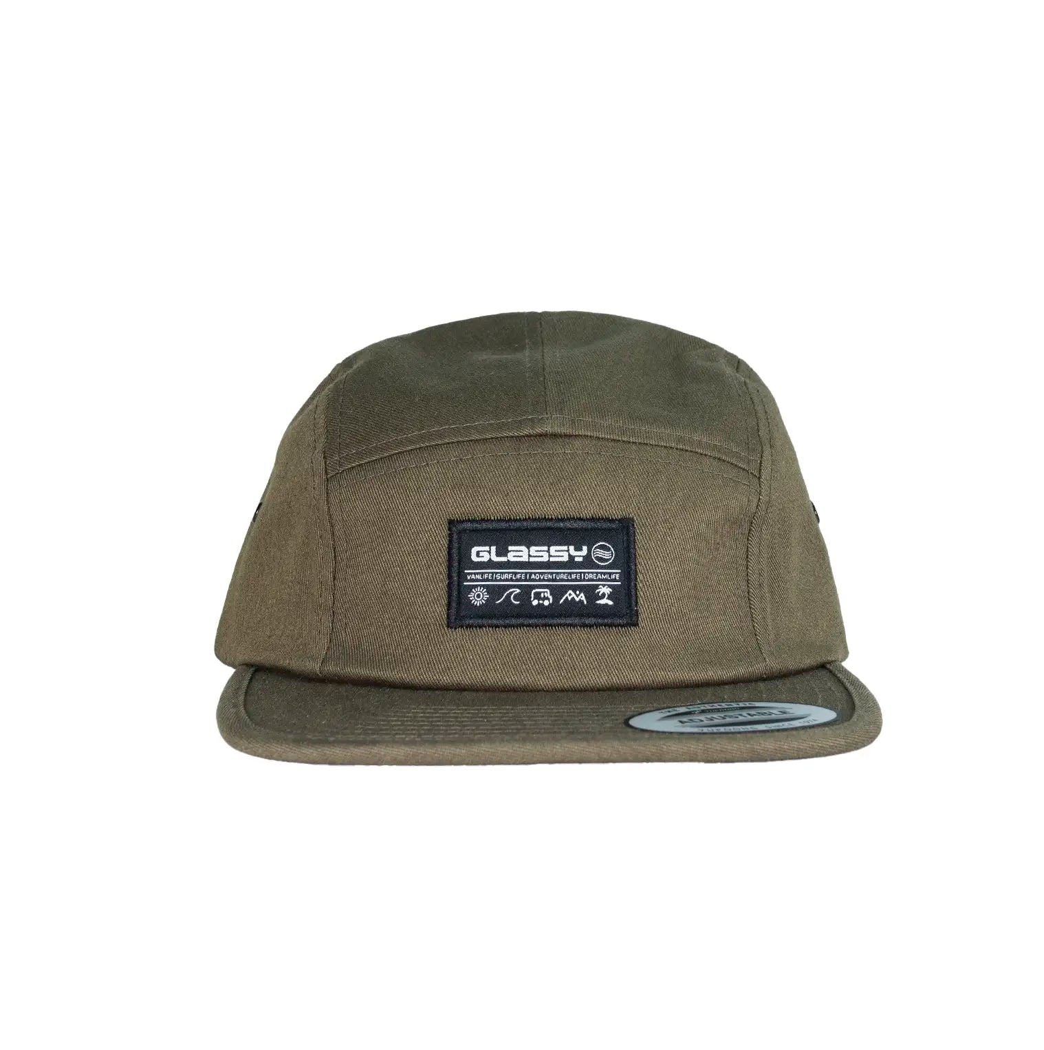 Military green jockey-style cap, featuring a classic five-panel design and rear adjustment. Perfect for getaways and urban style.