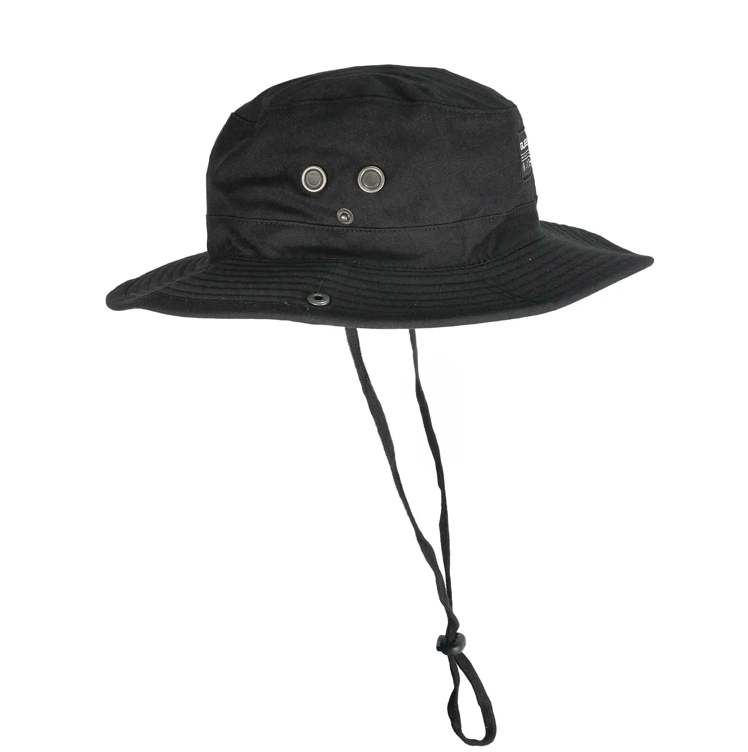 This bucket hat has been crafted from a durable, technical, lightweight ripstop fabric designed for warm climates. Its construction combines a flat brim and mesh vents for optimal ventilation, making it ideal for activities like fishing, surfing, or camper trips. This bucket hat is perfect for van getaways, fishing days, or sun-soaked activities such as stand-up paddleboarding.