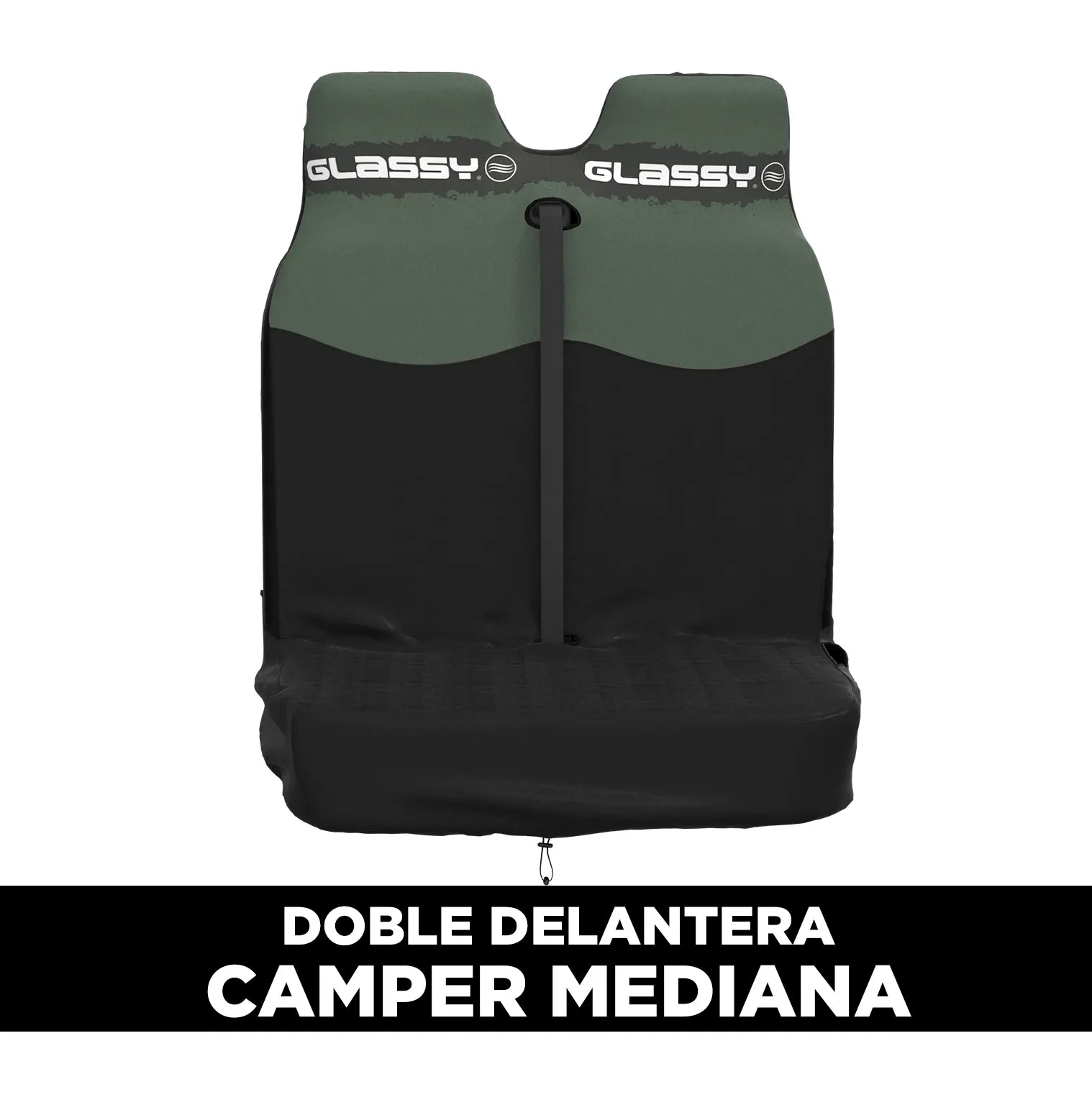 Vuoi proteggere il sedile del tuo camper? La copertura impermeabile Glassy è la migliore che troverai. Questa versione doppia presenta un'apertura centrale con chiusura in VELCRO® per la cintura di sicurezza e si adatta perfettamente alla maggior parte dei sedili anteriori doppi di furgoni come VW Transporter, Opel Vivaro, Renault Trafic, Ford Transit Custom, ecc. (in caso di dubbi, contattaci).