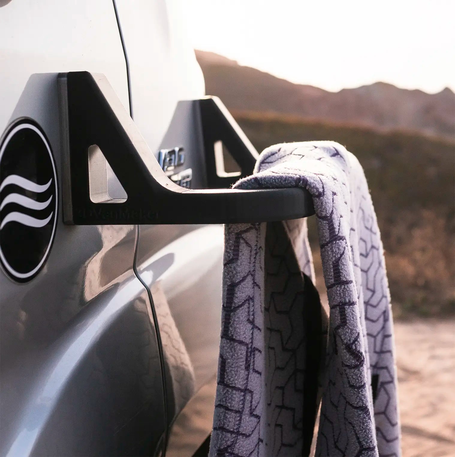 Fabricado con materiales resistentes a la intemperie, soporta el peso de tu neopreno, poncho o incluso toallas pesadas después de la sesión. Ideal para surfistas, kitesurfistas o cualquier amante de los deportes acuáticos que busque mantener su furgo limpia y ordenada.