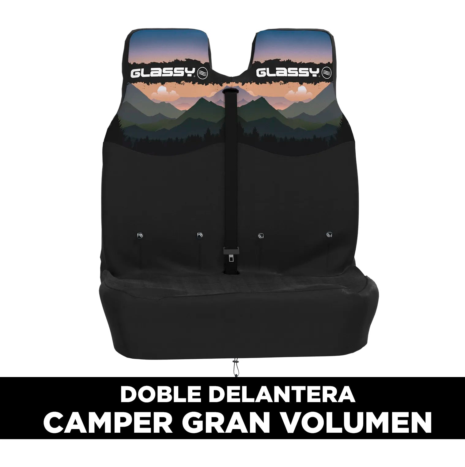 ¿Quieres proteger el asiento de tu furgoneta camper? La funda impermeable Glassy es la mejor funda asiento camper que encontrarás. Esta versión doble cuenta con abertura central mediante cinta de cierre de la marca VELCRO® para pasar el cinturón de seguridad, y se adapta perfectamente a la mayoría de asientos dobles delanteros de furgonetas tipo Fiat Ducato, VW Crafter, Mercedes Sprinter y Vito, Opel Movano, Renault Master, Iveco Daily, etc. (consultar en caso de duda)