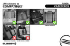 Ésta versión se adapta a los reposacabezas de los asientos de furgonetas Volkswagen Transporter, California Beach/Ocean, Multivan, Mercedes Marco Polo, Vito, Viano, Opel Vivaro, Renault Trafic,… y todos los cabeceros que encajen en forma y medida según la tabla de medidas y guía de compatibilidad. (Ver imagen de compatibilidad)