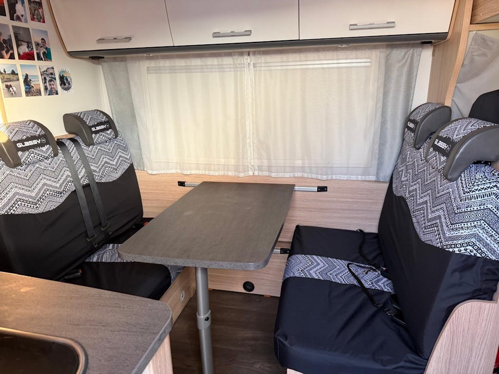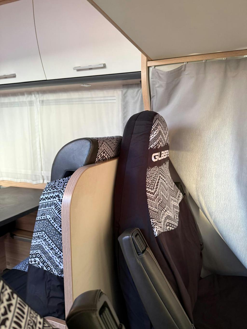 Las fundas Glassy son uno de los mejores accesorios camper que podrás tener para proteger tus asientos y darle un nuevo aspecto al interior de tu furgoneta camper. Esta versión doble se adapta perfectamente a la mayoría de bancadas TIPO OKB de furgonetas con chasis Fiat Ducato, Peugeot Boxer, Citroën Jumper, Volkswagen Crafter, Mercedes Sprinter, Renault Master, Nissan NV400, Ford Transit, etc. que pueden montar camperizadores como Benimar, Pilote, Adriá, Knaus, Weinsberg, Burstner, Challenger, Frankia,… y que no lleven el cinturón de seguridad integrado en asiento. (consultar en caso de duda)