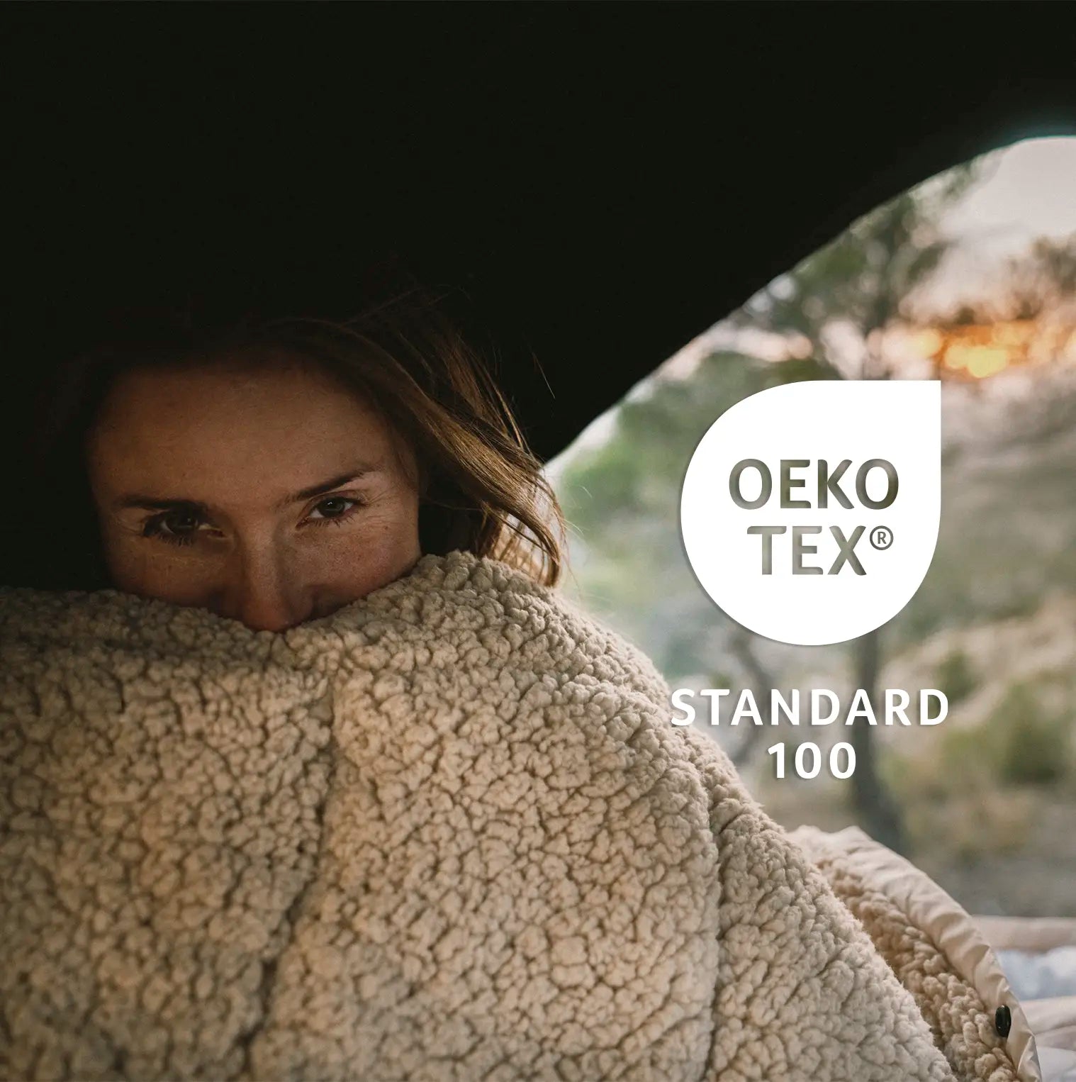 La capa interior de sherpa reciclado garantiza una suavidad y calidez superior. Fabricada con poliéster reciclado de botellas de plástico, ofrece una comodidad insuperable para tus noches en la naturaleza.